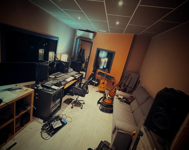 Salas acondicionadas, microfonía y preamplificadores especiales para la captación vocal y/o de instrumentos en la primera etapa de Grabación.